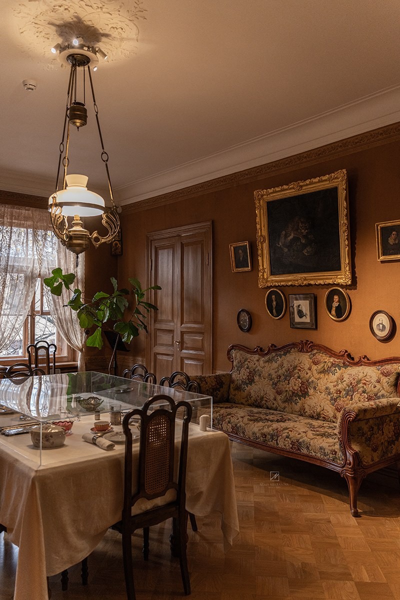 А потом случается момент, который невозможно запланировать. Смотрительница, та самая настоящая петербурженка, вдруг предлагает аккуратно открыть фотоальбом на столике. И ты листаешь его почти с замиранием, словно прикасаешься не к бумаге, а ко времени. В этот момент пространство окончательно перестаёт быть экспозицией и становится домом, с памятью, с жестами, с едва уловимыми следами людей.