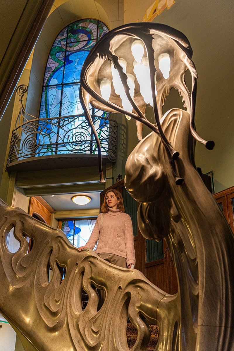 Особняк был построен в 1900–1903 годах. Здесь всё будто движется. Но асимметрия фасада не нарушает гармонии, а создаёт ритм, который продолжается во всех декоративных элементах. Мозаики и витражи играют цветом, отражают свет, оживляют каждый уголок.