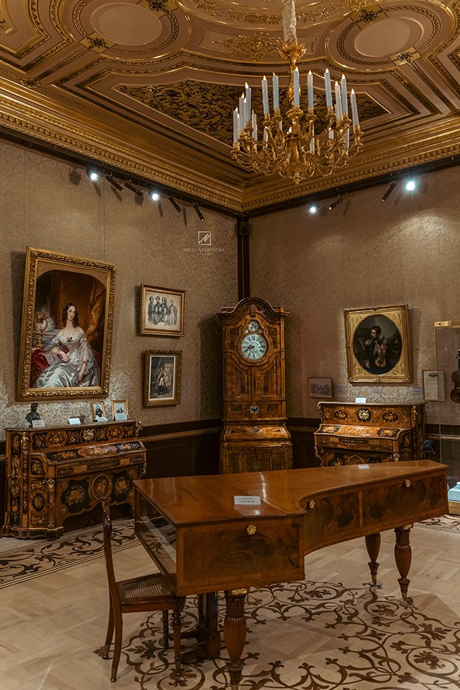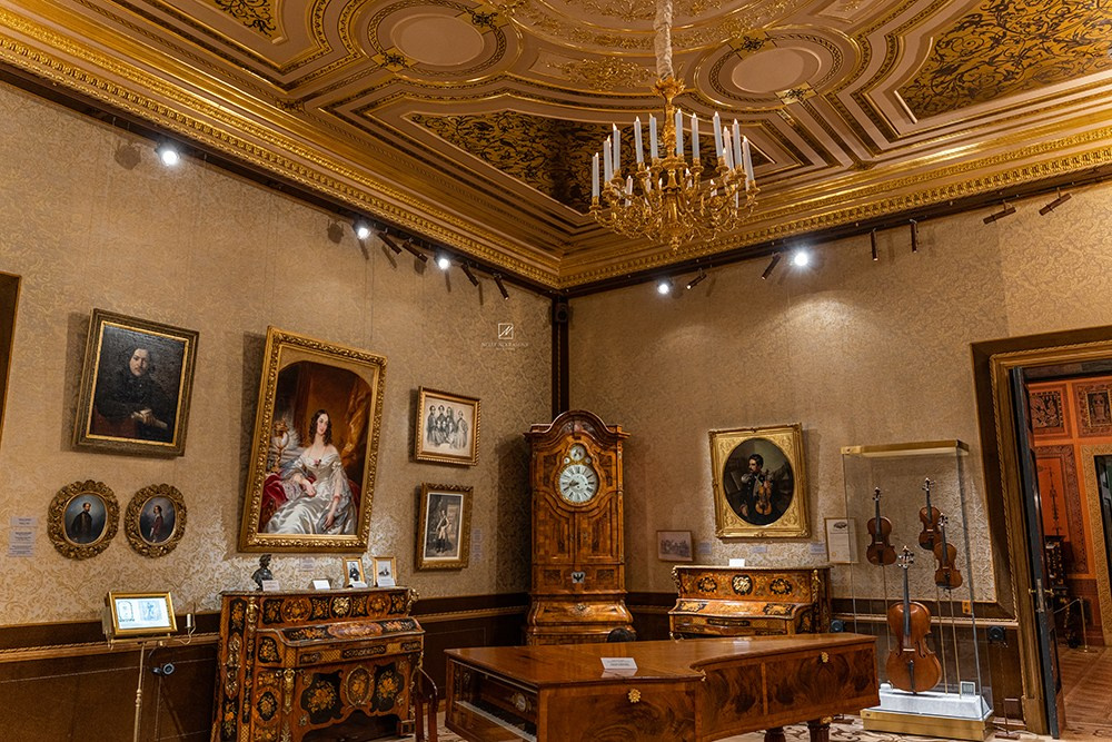 Сегодня здесь — Музей музыки. Когда-то барон Константин Штакельберг собрал свою музыкальную коллекцию, превратив личное увлечение в дело, которое пережило века. Его страсть подарила нам редчайшие инструменты: хрустальную флейту, дуэтный рояль «Плейель», трёхмануальный клавесин, виолончель Николая II и много других уникальных экземпляторов.